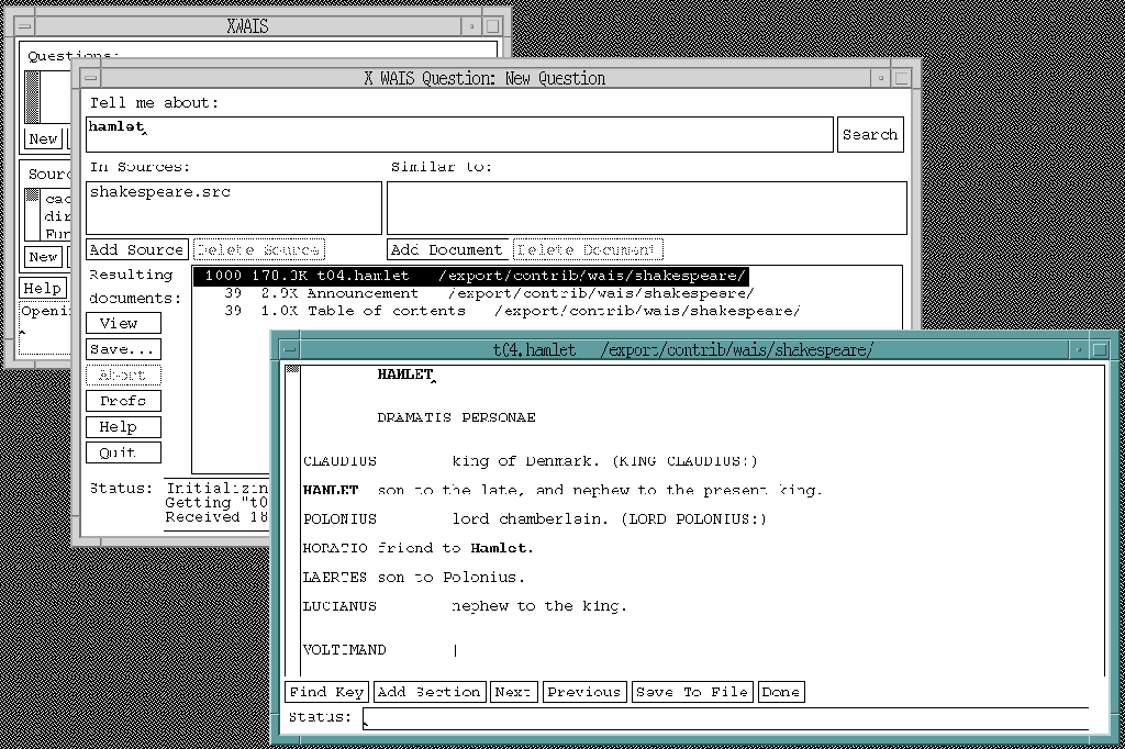 WAIS は Brewster Kahle が考案し、 Dow Jones、 Thinking Machines、Apple Computer と