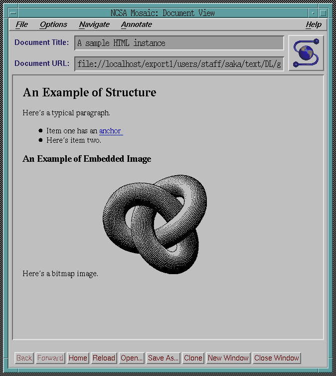 図2 Mosaic による HTML 表示例