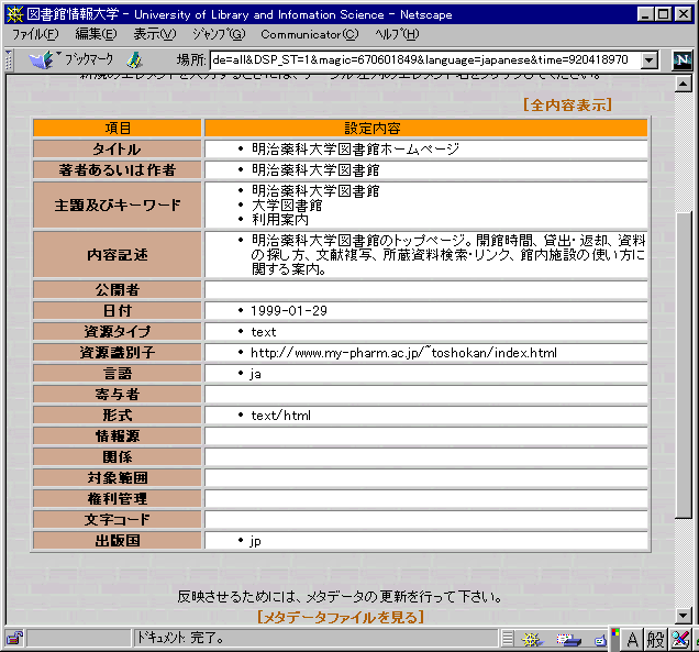 [1] Dublin Core$B;2>H5-=R!$(Bhttp://www.DL.ulis.ac.jp/DC/