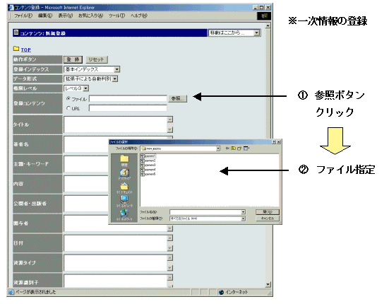 図5.InfoLib-EDITのメタデータ入力,一次情報登録画面