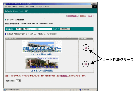 図6-2.データベース別検索結果画面
