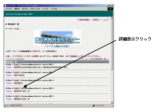 図6-3.検索結果一覧画面(デジタル岡山大百科)