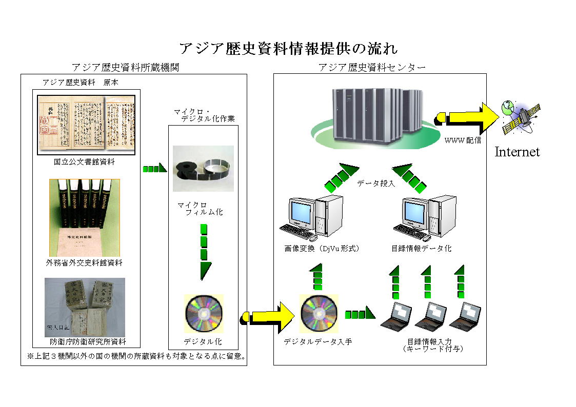 アジア歴史資料センターは、国立公文書館、外務省外交史料館、防衛庁防衛研究所図書館