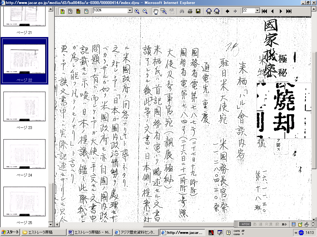 戦争終了期までの「アジア歴史資料」を電子データで収集・提供している。画像データ数