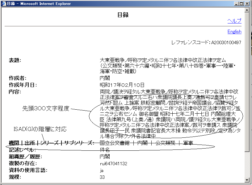 注7:小川千代子「ISAD(G)の実装:アジア歴史資料センターの階層検索システム」『レコ