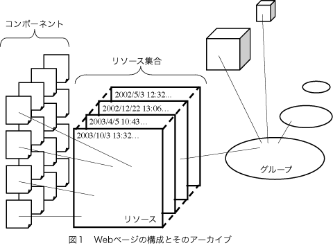 を「コンポーネント」と呼ぶ。コンポーネントもURLと取得日時によって識別される。ま