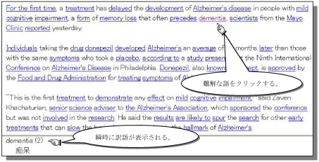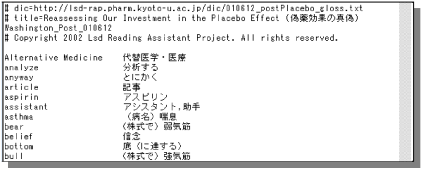ほぼあらゆる英文電子情報について、HTML形式で語句の注を埋めこんだ形態で、オリジ