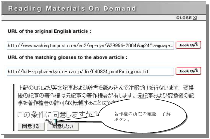 サーバにおいて脚注付記事に変換することになり、個々人が著作権を了解の上利用するこ
