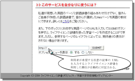 (図7:任意の記事を脚注付英文に変換するためのURL入力画面)