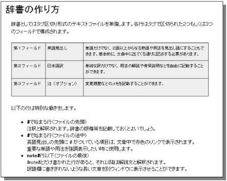 ンス一般辞書)以外の辞書を利用したり、あるいは独自に辞書・単語帳を作成することで、