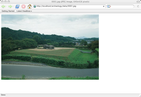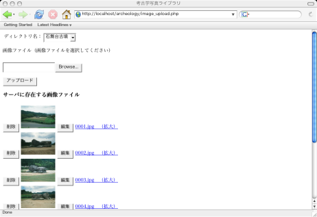 考古遺跡写真データのシステムへの入力、表示には、Webブラウザを利用する。図1では、遺跡毎