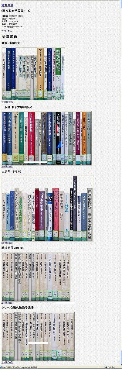 こうした検討を踏まえて、本研究では本棚表示に特化したシステムを提案する。 具体的には、 WWW を通じて実行した OPAC の検索結果や実際の配架状況に沿って、背表紙画像を並べた Web ページをサーバ上で動的に生成し、表示する。