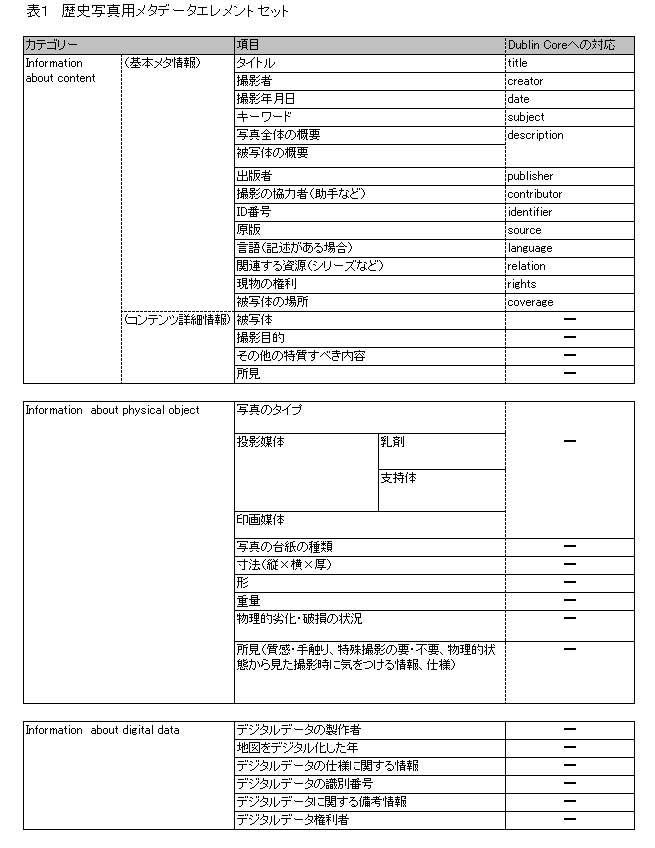 料にDublin Coreを用いてた実績がある[10]。そのため、歴史写真デジタルアー