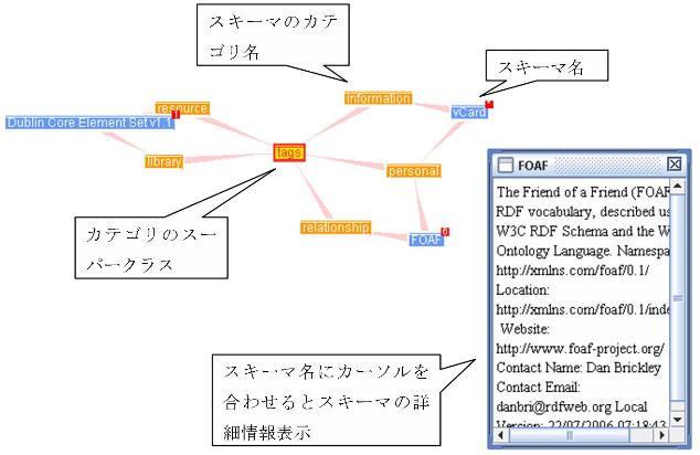 図 4 スキーマとカテゴリを繋ぐグラフ表示(TouchGraphインタフェース)