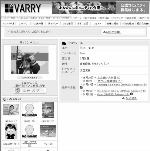 利用者は,他人のWebページもみることができる.ここにはその人のプロフィールや写真,日記などが表示されるが,これはその人が見るための個人用Webページとは別であることに注意が必要である.
