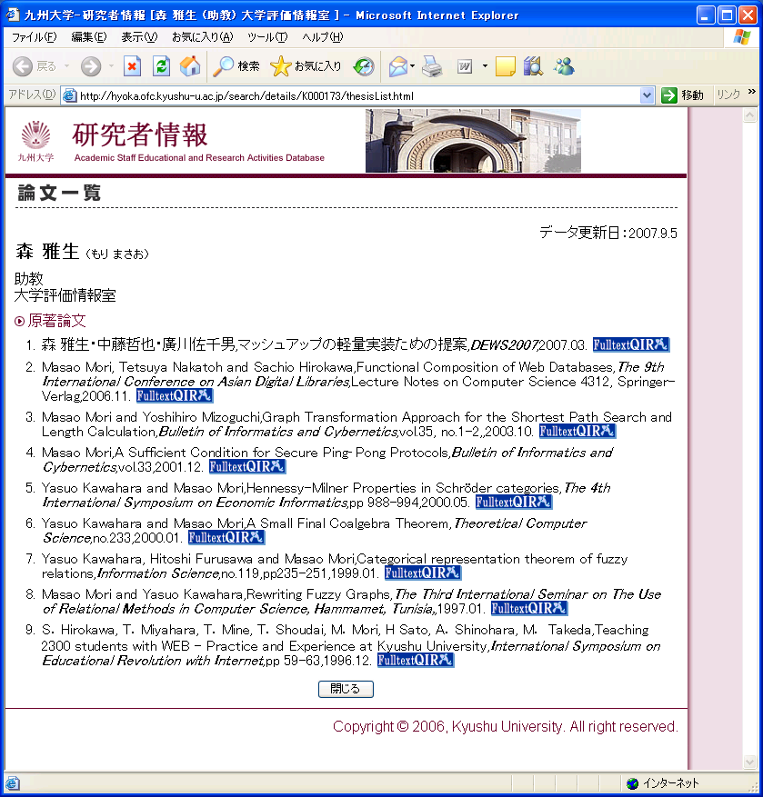 http://leda.lib.kyushu-u.ac.jp/link/link.php?pub_flag=p&au_id=00161&pub_id=3036×tamp=2007/05/01/%2015:42:01&au_f_name=%E6%A3%AE&au_l_name=%E9%9B%85%E7%94%9F&title=Functional%20Composition%20of%20Web%20Databases&au_all=Masao%20Mori,%20Tetsuya%20Nakatoh%20and%20Sachio%20Hirokawa&conf_name=The%209th%20International%20Conference%20on%20Asian%20Digital%20Libraries&conf_year=2006&conf_month=11&other=&conf_category=1&conf_journal=2&language=2