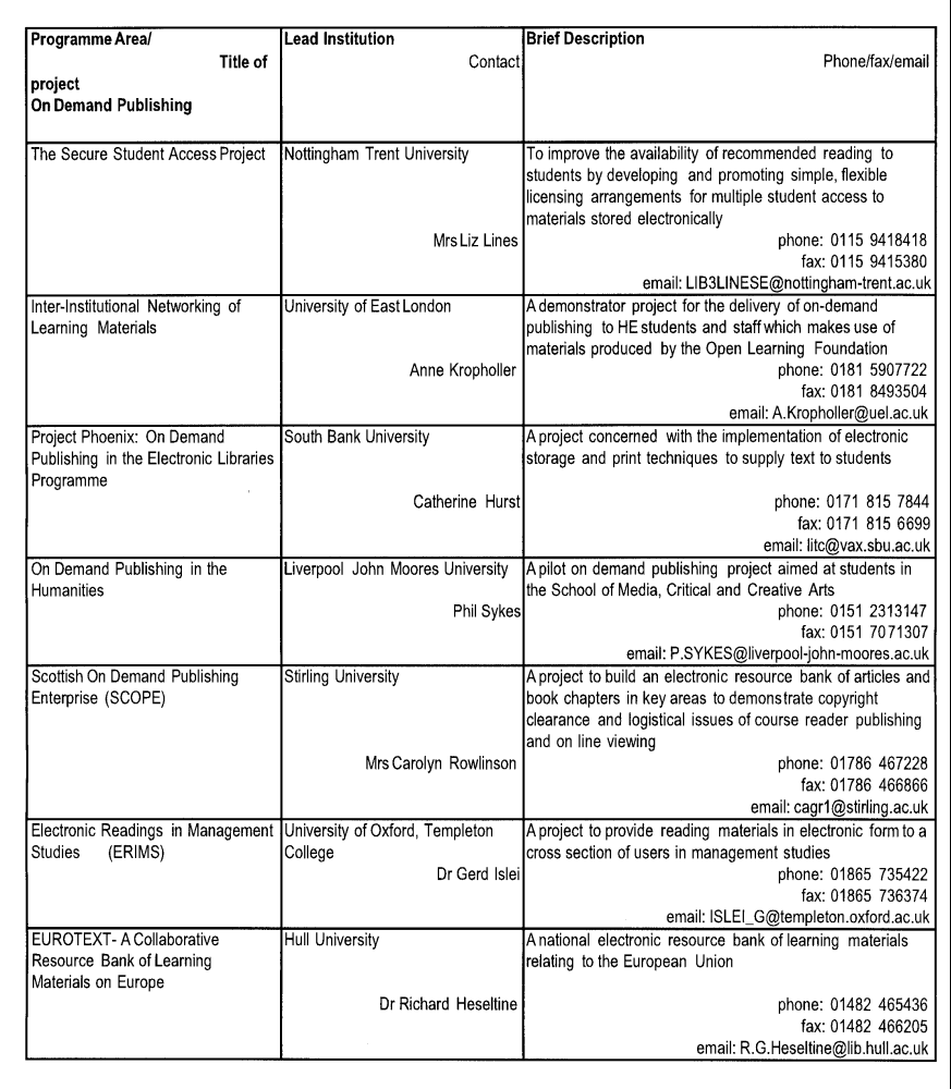 (5)Project Phoenix : On-Demand Publishing Project Under the Electronic Libraries Programme.