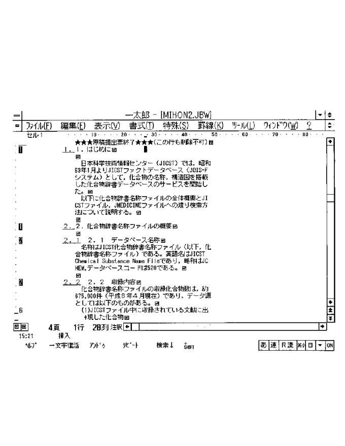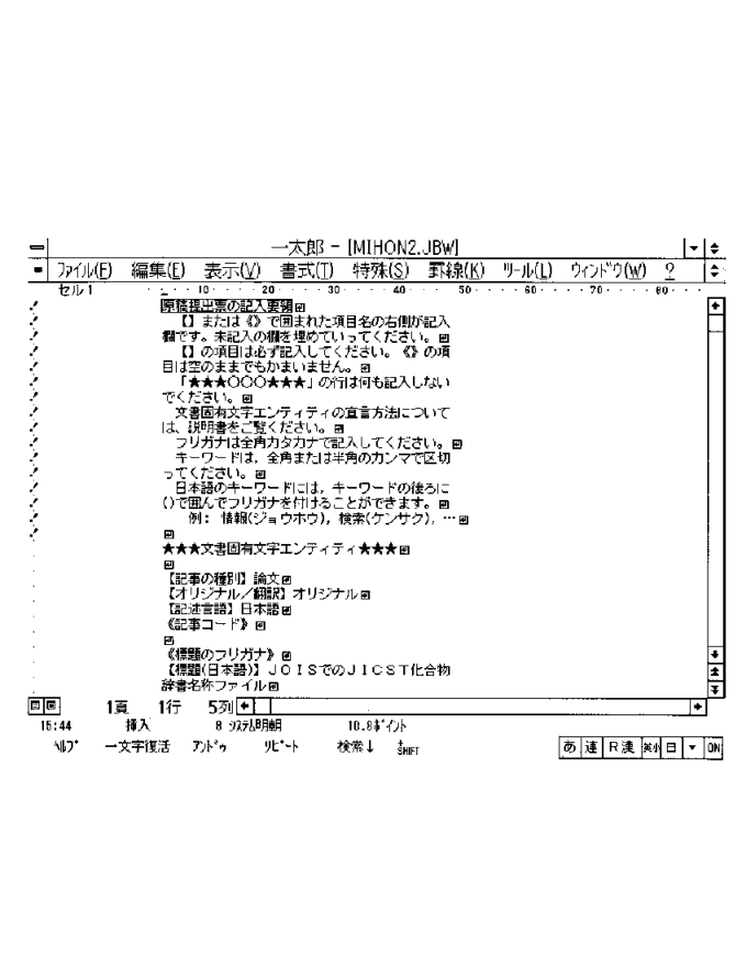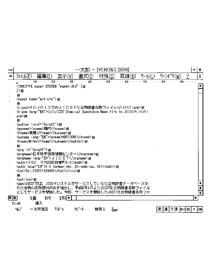 「一太郎」の機能を使用してJICST DTDの各要素を記述するので,SGMLおよびJICST DTDの習得は不要