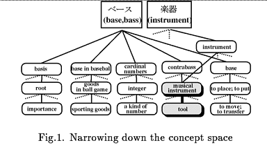 概念体系の階層構造に基づいた概念空間の意味的な絞り込み