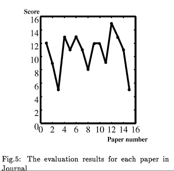 Fig.5 に示す. 各論文に対する評価の平均点は, 15点満点中10.6点と, 総合的