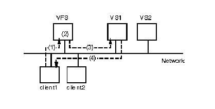 "ServerA" and "ServerB". They only mount VFS and do not need to know