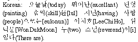 English: There are two priests LeeChiHo and WonDukMoon for a man having excellent painting skill.